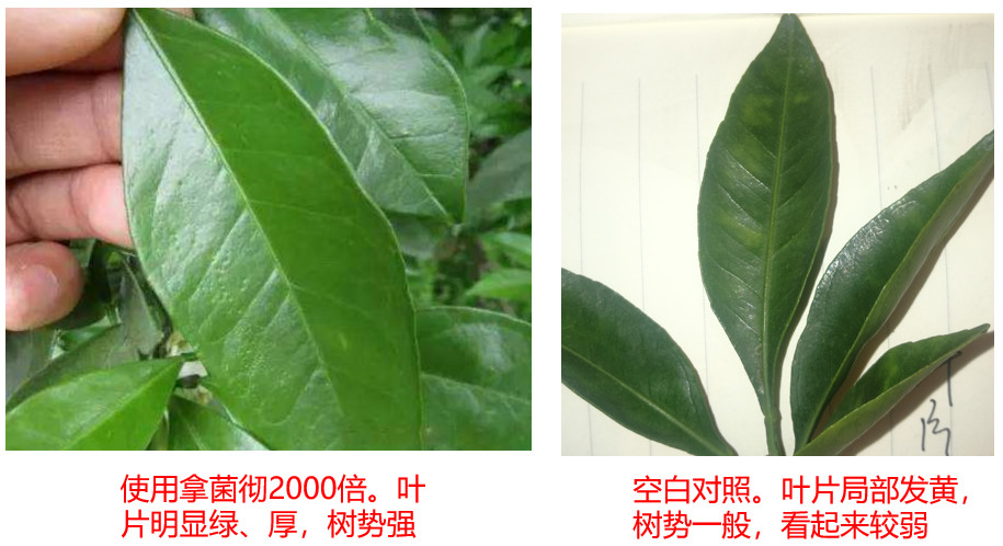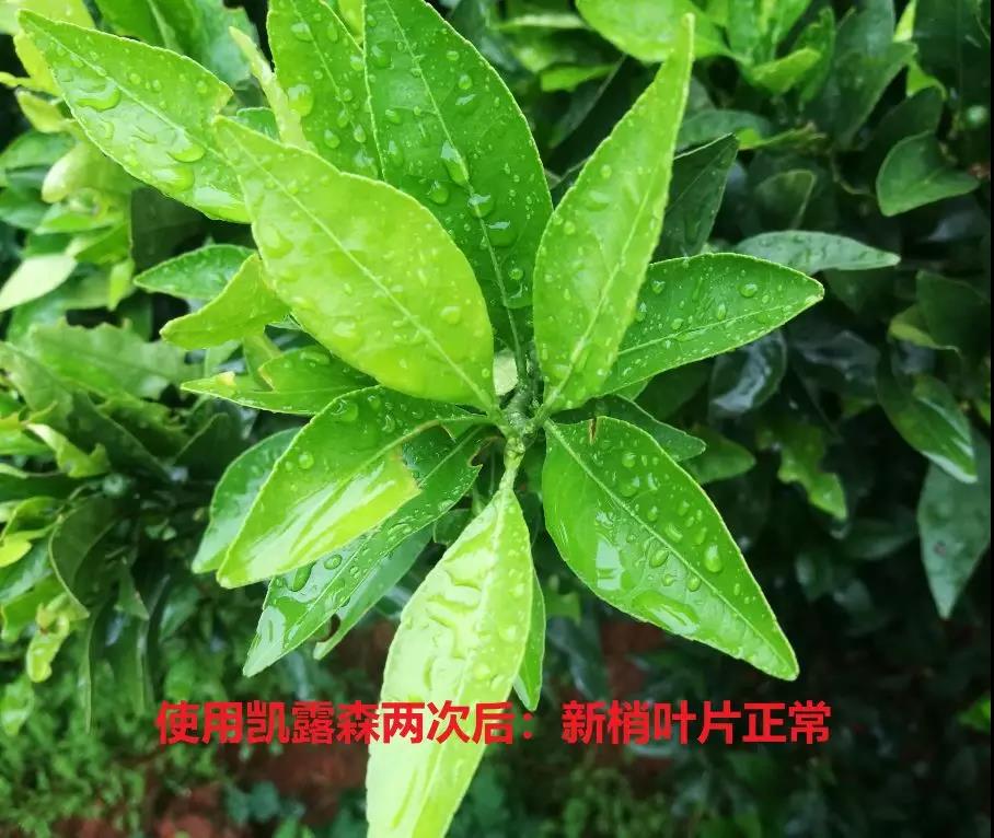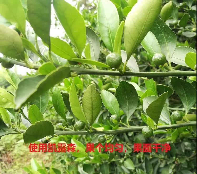 綜合以上實踐應用和試驗得出結論:全剩余期使用2-3次凱露森葉片、果面不會受到脂點黃斑病和砂皮病的侵染,***終達到葉片濃綠、果面靚麗的效果,而且能夠提高樹勢。