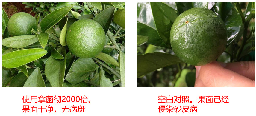 然而在柑橘種植管理過程中,砂皮病(桂林地區俗稱“鐵砂病”)不斷困擾著沙糖桔的種植者,成為阻礙種好柑橘的頭號病害。運城綠康生產的凱露森(原名拿菌徹)在桂林市防治脂點黃斑病、砂皮病效果突出,已經得到廣大用戶的認可,現分享給大家: