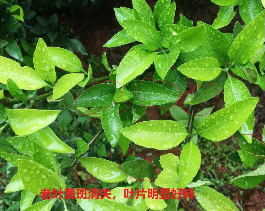 我們建議使用凱露森(2000倍)+黃變綠(1000倍)連續使用兩次進行改善。經過兩次使用后觀察,果樹情況大有改觀。【2018年5月8日觀察】